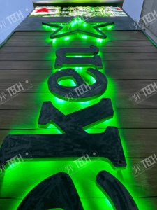 La scelta dell’uso dei Led Art Tech infatti evitano le dispersioni luminose, si accendono istantaneamente e non hanno bisogno di altri elementi riflettenti (diversamente dal neon). Inoltre Art Tech risalta e richiama l’atmosfera generata dell’azienda, utilizzando Led ad alta definizione di qualità superiore che non producono calore e non contengono sostanze nocive.